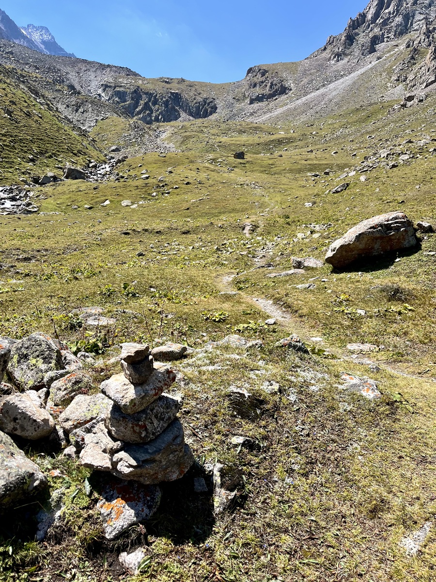 Since we were among the last hikers that day, there weren’t many people to follow, just countless stone cairns scattered in different directions. We were advised to stay slightly right and climb higher, but even then, it was still confusing.