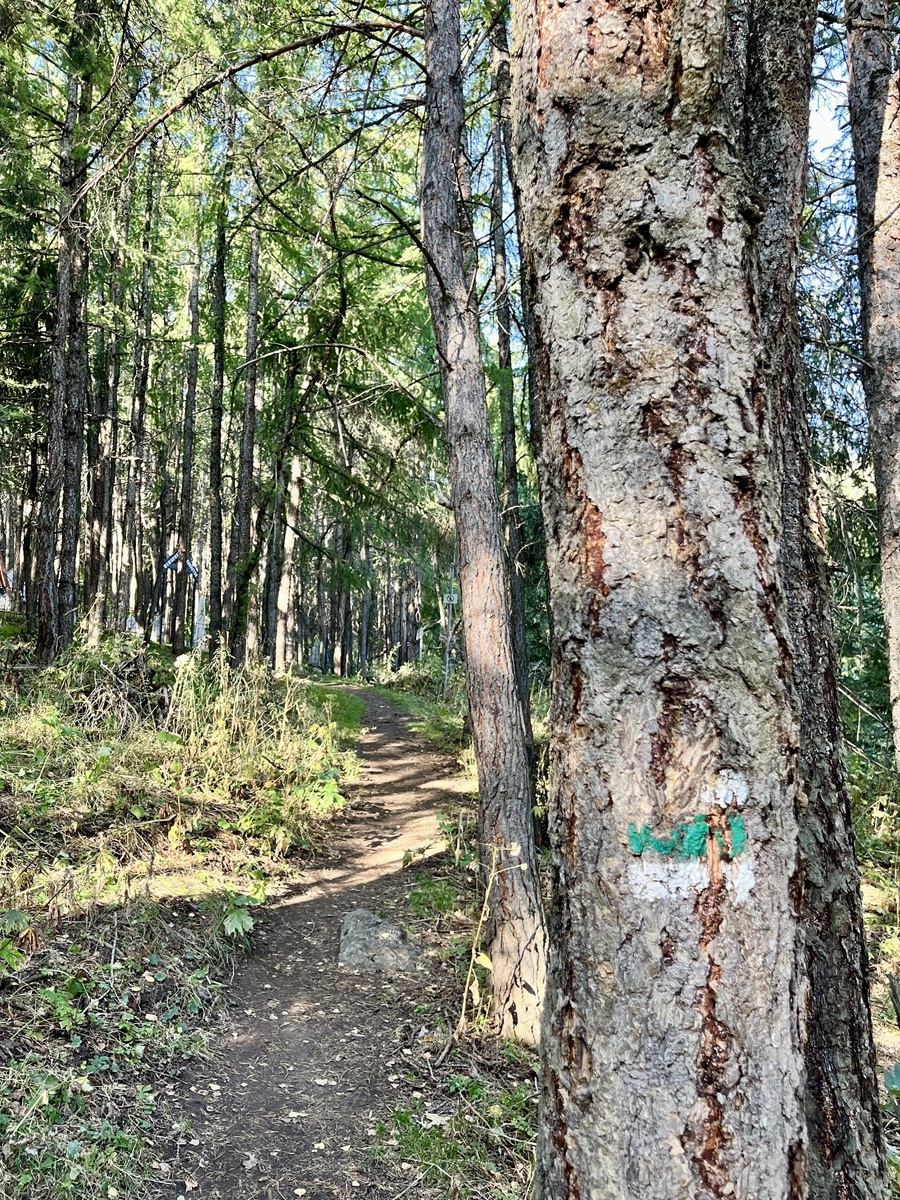 Beyond the memorial, the trail leads through a shady forest filled with tall conifers and dense undergrowth. Because of the abundance of the vegetation, this part felt refreshingly cooler compared to other lower-elevation sections.