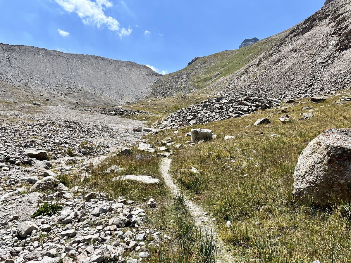 After the incline, the trail dips briefly toward the gorge before leveling out into a rocky alpine landscape. Here, loose stones, gravel, and scattered boulders dominate the path. While it’s not as strenuous as the first climb, the uneven terrain makes sturdy footwear and trekking poles especially useful.