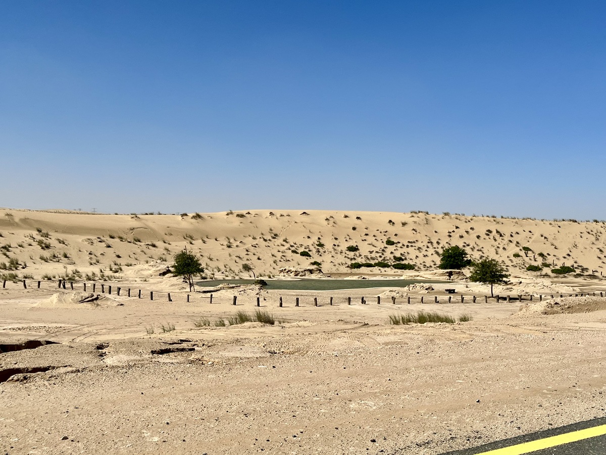In the middle of the desert, we spotted what looked like a turquoise lake. But based on the map, there was no lake. So, it was completely because of the rains from the previous days.