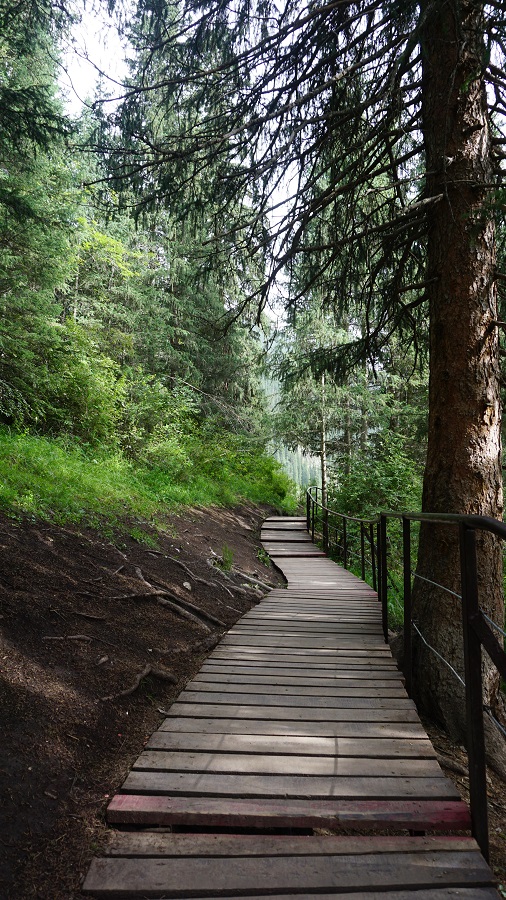 The Lower Kolsai Lake is the most accessible, as it's reachable by road and with facilities such as toilets, a coffee shop, cafeterias, and even guest houses and campsites. From the parking lot, it's just a short walk down to Lower Kolsai Lake. Wooden planks line the lakeside, making for a scenic walk around it. Despite visiting during the summer, I was greeted by a refreshing cool breeze thanks to the lakeโ€™s altitude of 1,800 MASL.