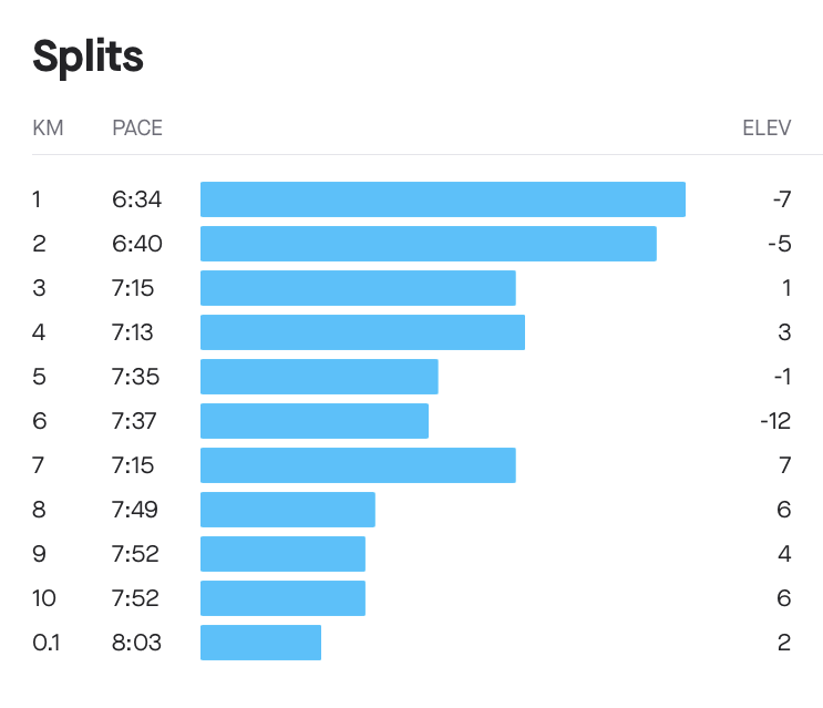 Despite the bad start (of running fast), I was over the moon with my result. I finished at 1hr, 14m, 41s (as per Mika timing) and it's 19 seconds below my goal! Another small win for me!