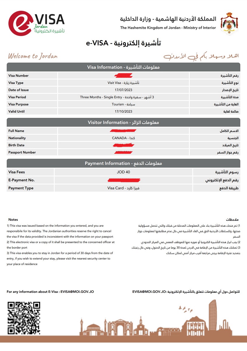 - Check your e-mail for your Jordan Electronic Visa (E-Visa)