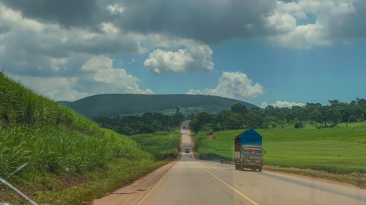 The matatu (local minibus) is now driving through the Mabira Central Forest Reserve highway, spanning approximately 300 square kilometers. The highway is lined with countless trees on both sides of the road and is followed by tea farms. Following shortly is the cable-stayed Jinja Nile Bridge, connecting the Central Region to the Eastern Region of Uganda.