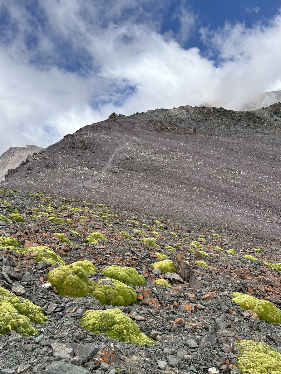 The landscape in Violet Pass has changed dramatically with little to no vegetation at all except for these cushion plants. Beyond the pass, the ridge has nothing but its ruggedness full of scree and gravel.
