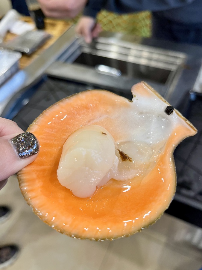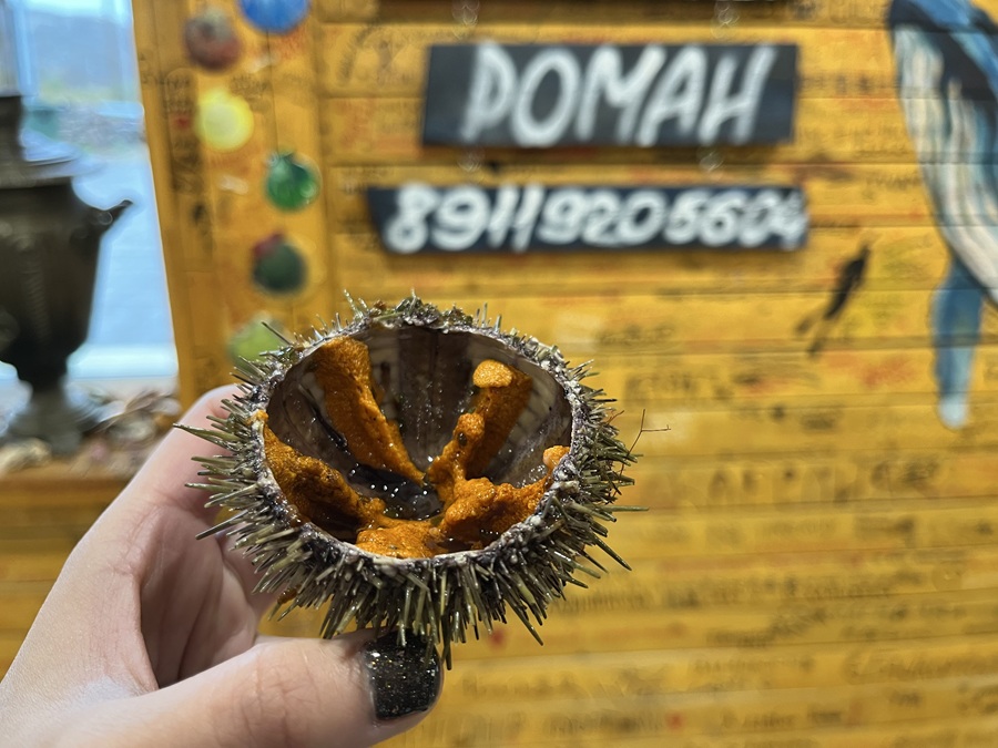 Before heading to the natural park, we made a short stop for breakfast. Given that we were in a coastal village, seafood was expected on the menu. But I was surprised to see borscht with moose meat! No one from our group ordered it (well I just want to see it first), so I just copied what they ordered: scallops and sea urchins.