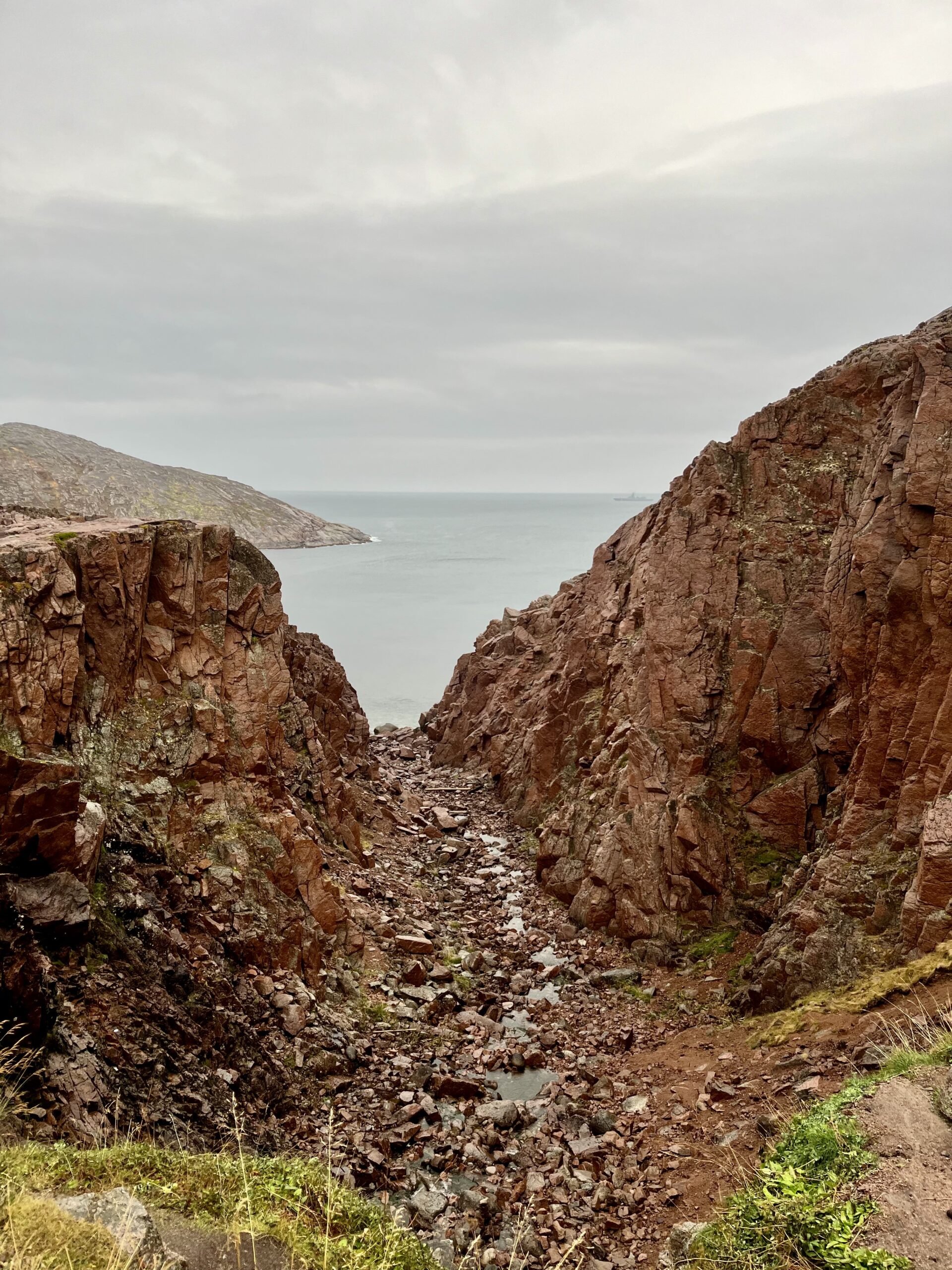 A short hike took us to a viewpoint, overlooking the vast Barents Sea, stretching endlessly beyond the horizon. The waterfall we encountered, though somewhat dry, was framed by its striking red color.